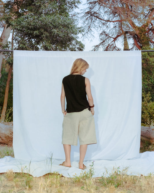 Les pièces, aux coupes amples et respirantes, ont été sélectionnées avec le plus grand soin, et les anoblissements sont toujours réalisés à Montpellier.